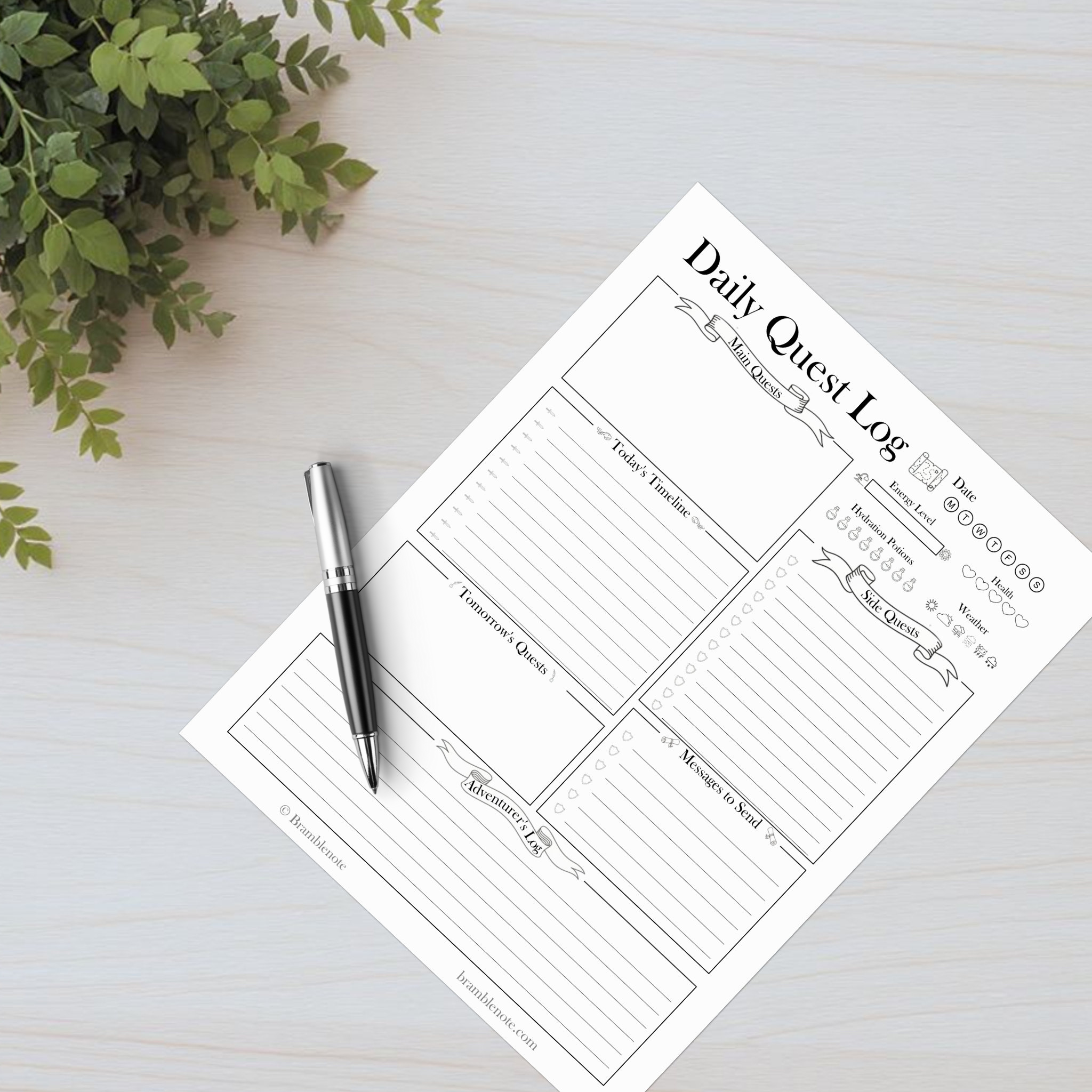 Fantasy Daily Planner Printable PDF – Undated Daily Quest Log Planner Page